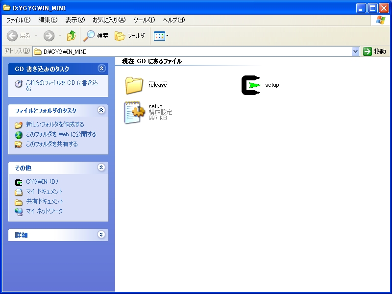 Step 2. ディレクトリが開くので、その中の「setup (setup.exe)」アイコンをダブルクリックし、Cygwinセットプログラムを起動してください。
