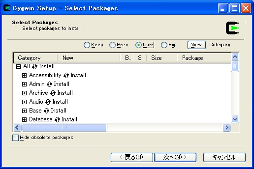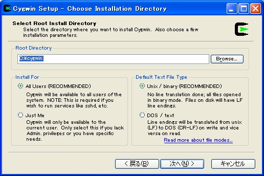 注意4:Cygwinは非常に有名なソフトウェアで、インストール方法や使い方などを解説したホームページが数多く存在します。不明な点があればインターネットなどで調べてください。また、いくつか書籍(インストールディスク付き)も出版されているので、そちらを購入するのも良い手だと思います。