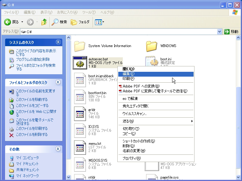 Step 11. 「autoexec.bat」ファイルを右クリックし、メニューから「編集」を選択してください(ダブルクリックは不可)。
