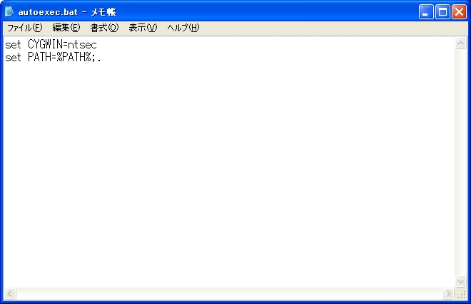 Step 12. メモ帳で「autoexec.bat」ファイルが開くので、下記の2行を追加し、ファイルを保存してください。保存が終わったら、一度再起動してください(ログオフでも良い)。