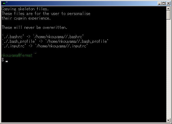 補足:以後、ユーザ名を「nkouyama」とし、ホスト名を「fermat」て話を進めます。各自のユーザ名およびホスト名に読み替えてください。