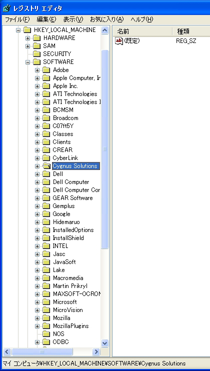 | マイ コンピュータ\HKEY_LOCAL_MACHINE\SOFTWARE\Cygnus Solutions |